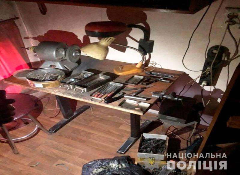 Під час санкціонованого обшуку із залученням Слідчого управління, спецпідрозділу «КОРД», вибухотехнічної та кінологічної служб обласного управління Нацполіції, у порушника вилучено станки, інструменти, знаряддя для виготовлення та переробки зброї, а також предмети, схожі на зброю, запчастини до них і боєприпаси. Зокрема: