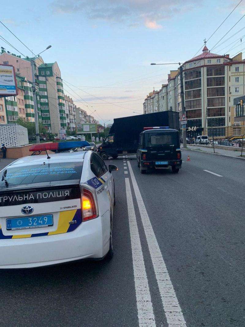 Водій вантажного автомобіля здійснював поворот ліворуч з крайньої правої смуги, чим спричинив перешкоду водію мотоцикла, який рухався в сторону Майдану. Потерпілий – водій мотоцикла, його госпіталізували.