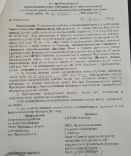 За інформацією сільського голови Миколи Костащука, Держгеокадастр хотів надати дозвіл колишньому начальнику та замначальника управління на розробку проекту землеустрою щодо відведення у власність двох земельних ділянок по 1,86 га кожна.
