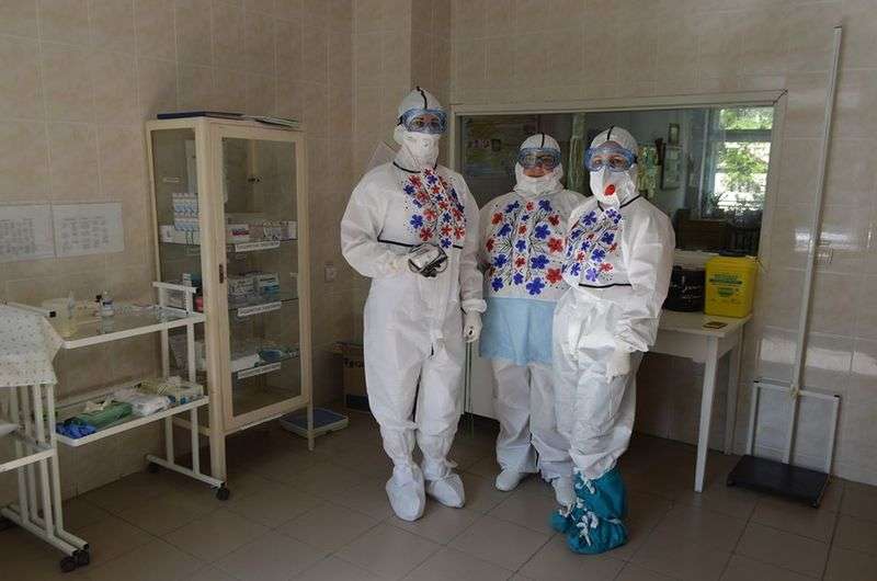 Оскільки одягнути вишитий одяг на роботі вони не мали змоги, одна із медсестер (Лілія Єремійчук) розмалювала орнаментами захисні костюми, повідомляє Кіцмань City.