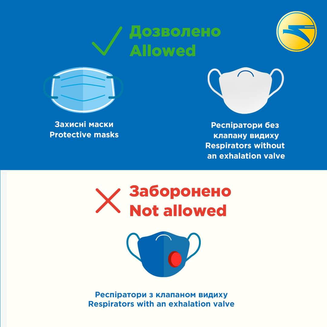 У компанії також зазначили, що носіння захисних масок є обов’язковим для всіх пасажирів від шести років. Але компанія заборонила носити респіратори з клапаном видиху, бо через нього однонаправлено виділяється біологічний матеріал, що може містити збудник інфекції.