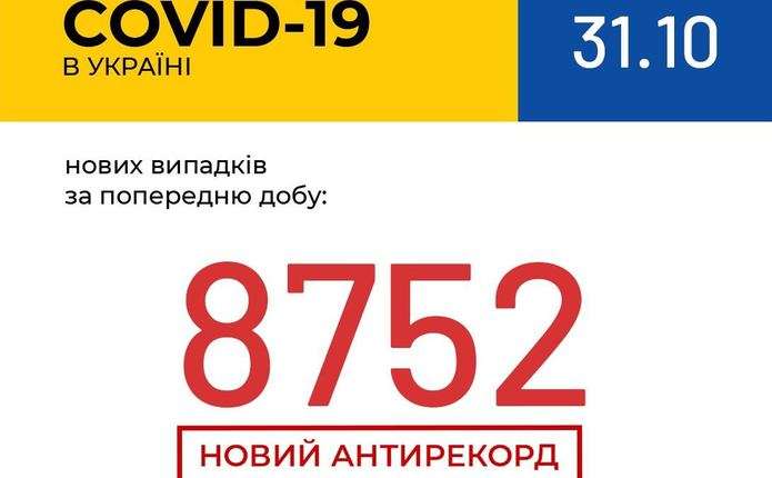 В Україні зафіксовано 8 752 нових випадки коронавірусної хвороби COVID-19 – це антирекорд кількості нових хворих за добу.