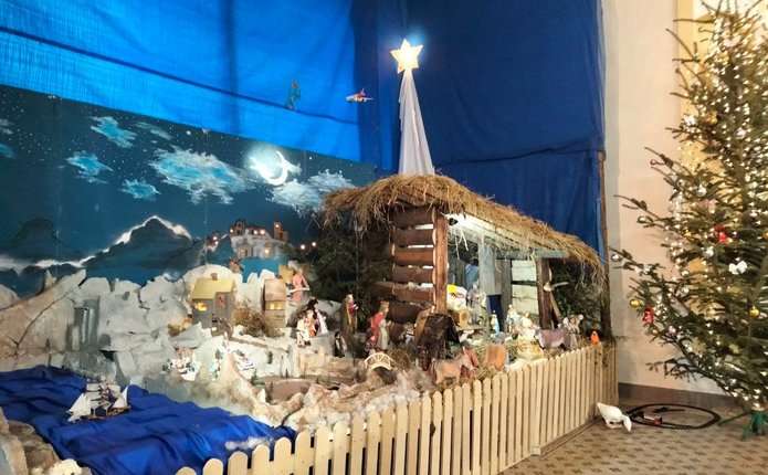 — Кожного року шопка змінюється, — розповідає отець Кшиштоф Сапальські. – Додаються нові фігури, якісь нові елементи. Цього разу у нас над шопкою літають літаки, на синьому небі світять зорі. Працює млин і навіть текла справжня вода, але потім цей механізм у нас трішки зламався. Люди щороку щось передають для вертепу. Зі Швейцарії цього разу нам передали три мініатюрні житлові будиночки, з Польщі – ковальську майстерню, у якій рухається за роботою коваль. Колією їде потяг, який сам причіпає вагон. Можна сказати, це не просто шопка, а наш світ у мініатюрі. Тут поєднаний час, у якому народився Ісус Христос, і час, в якому живемо ми: працюємо, їдемо у потягах та літаках… Тобто, світ змінився, люди багато чого освоїли, а Христос, як і раніше, приходить до людей.