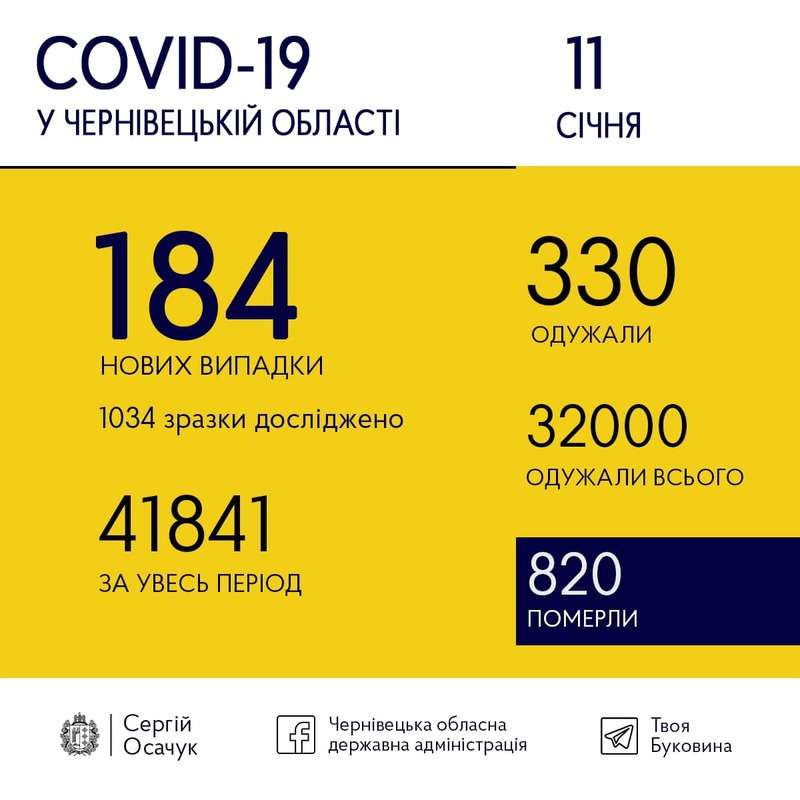11 січня на Буковині виявили 184 нових випадки коронавірусу.