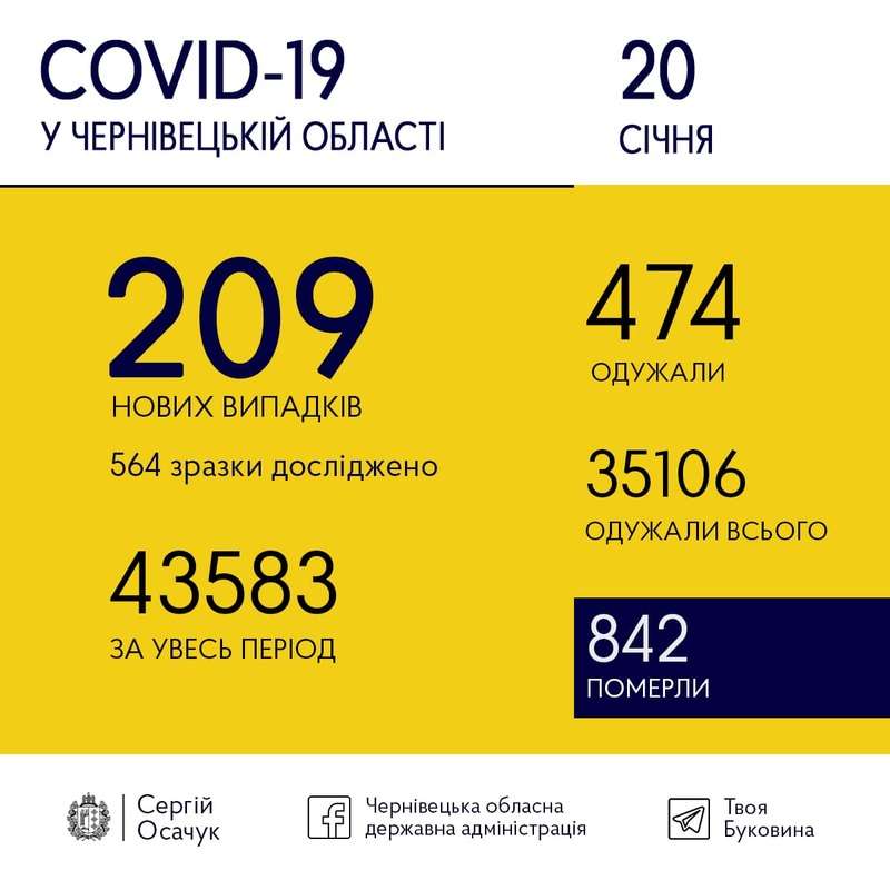 20 січня на Буковині виявили 209 нових випадків коронавірусу.
