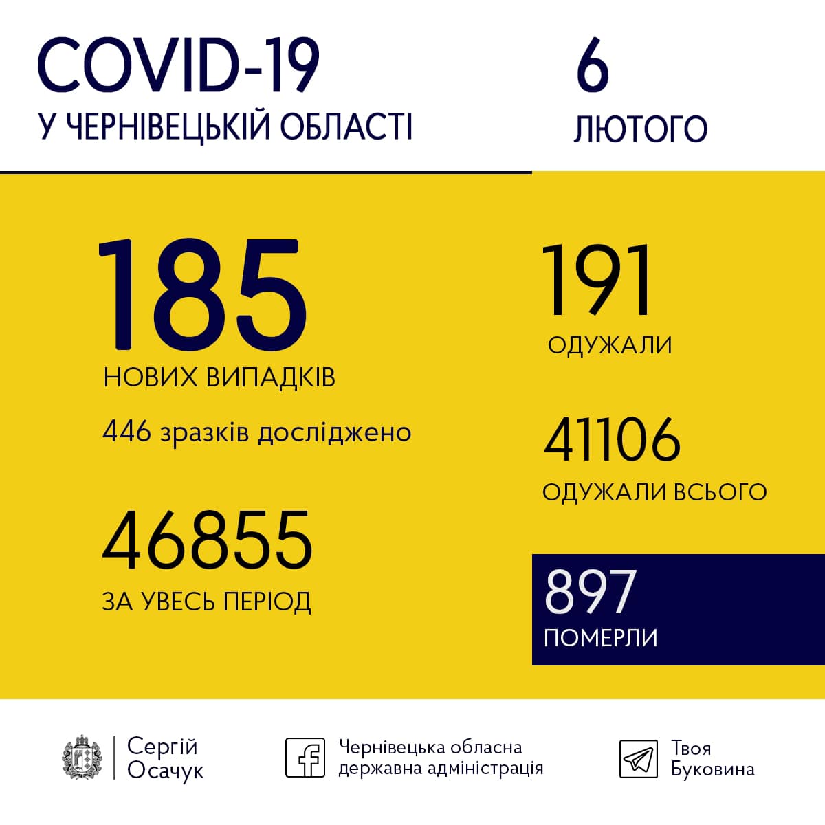 У дописі він також зазначив, що від моменту звістки про першого хворого, вірусом в області інфікувалися 46 855 людей, а загалом недугу поборов 41 106 буковинець. Померли від COVID-19 897 осіб.