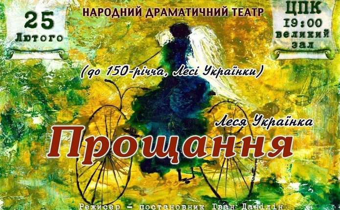 У рамках відзначення 150 років з дня народження Лесі Українки (Лариси Петрівни Косач-Квітки) – видатної української письменниці та громадського діяча, однієї з центральних постатей національної культури, в Центральному Палаці культури Чернівців відбудеться показ вистави «Прощання» у виконанні народного драматичного театру.