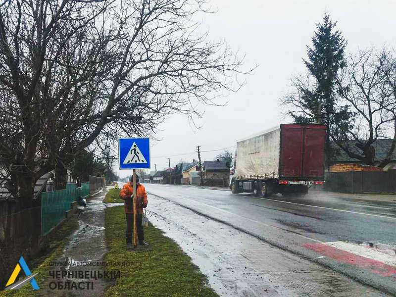 На дорогах Буковини оновлюють знаки пішохідного переходу