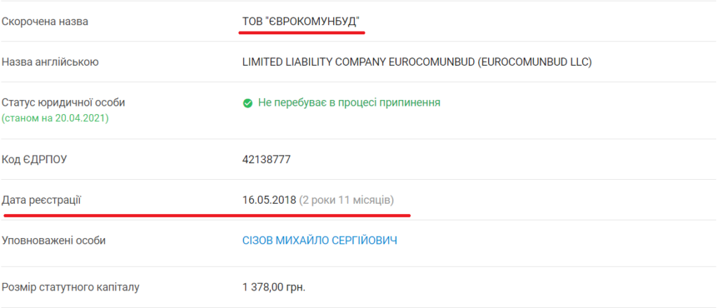 Засновницею «Єврокомунбуду» в електронних сервісах Youcontrol зазначена Любов Запоточна. Керівником підприємства є Михайло Сізов. Останній торік балотувався до міської ради від «Команди Михайлішина» під №23 у списках партії. Про це йдеться в електронному сервісі «ЧЕСНО».