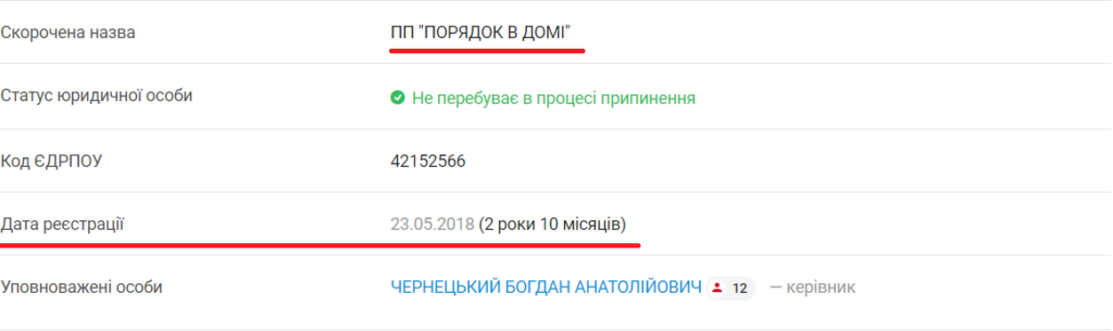 Приватне підприємство «Порядок у домі» очолює Богдан Чернецький. Він також торік ішов на вибори до міської ради, але від партії «Народний контроль». Як уже згадували, «Народний контроль» також у липні 2018 року голосував повним складом за усунення Олексія Каспрука з посади міського голови.