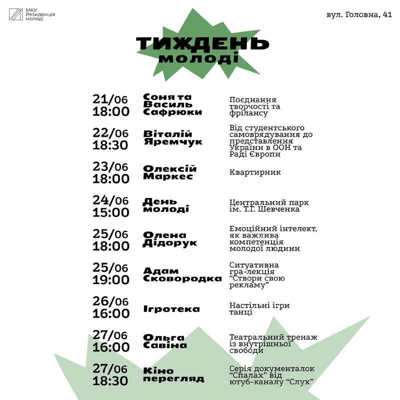 Працівниками установи напередодні проведено невелике опитування щодо бажаних тем та спікерів найцікавіших для молоді. Щодня «Резиденція молоді» готує насичену програму за адресою: вул. Головну, 41.