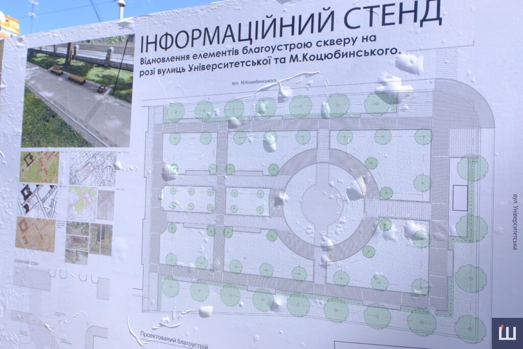 За словами директора Департаменту, до початку ремонту у сквері розмістили інформаційний стенд. Громадськість повідомили у такий спосіб.