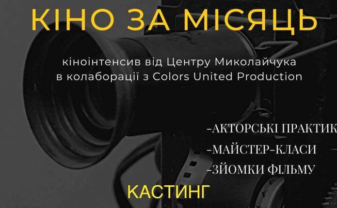Кіноінтенсив «КІНО ЗА МІСЯЦЬ» – це перший крок до створення кіношколи в центрі Миколайчука. Проєкт втілюється в партнерстві з продакшн студією Colors United, що дає учасникам можливість відразу поринути в процес підготовки та зйомки фільму.