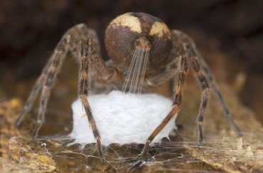 Еще одним интересным экспонатом выставки стала фотография «Качая колыбель» энтомолога Гиля Вайзена. Он запечатлел, как паук-рыболов (паук-пизаурид) вьет из своей паутины мешок для кладки яиц.