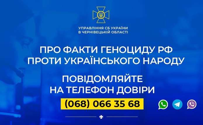 Відомство просить усіх, хто потерпів від збройної агресії ворога, повідомити про це. У зв’язку з розслідуванням злочинів РФ проти українського народу за ст. 442 (геноцид) Кримінального кодексу України. Про це йдеться на сайті Чернівецької ОВА (ОДА).