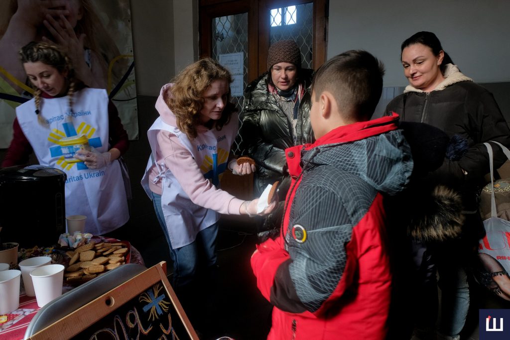 У черзі стоять дві жінки з дітьми. Одна з них — Оксана — жила під Києвом. Вона виїхала під обстрілами ще два тижні тому. Інша жінка, її сестра, не захотіла відрекомендуватися.
