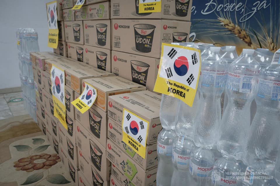 Посольство Республіки Корея передало продуктові набори переселенцям у Чернівцях. Про це повідомляють на фейсбук-сторінці Чернівецької обласної військадміністрації.