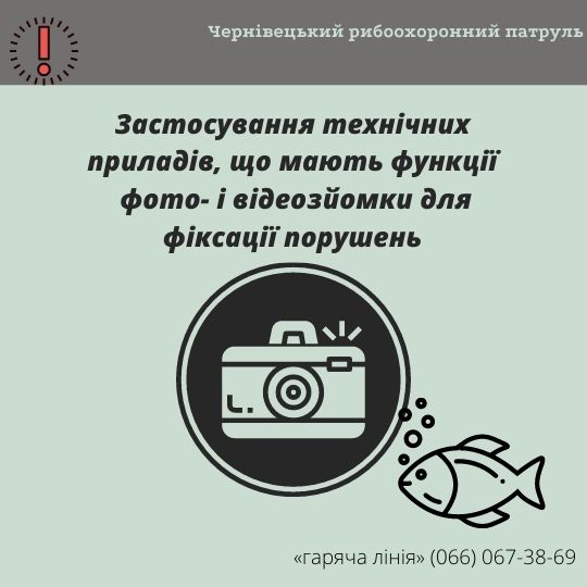 Чернівецький рибоохоронний патруль закликає громадян бути відповідальними та дотримуватись природоохоронного законодавства України. Якщо Ви помітили порушення – прохання терміново повідомляти за номером цілодобової телефонної «гарячої лінії» відомства: (066) 067-38-69.