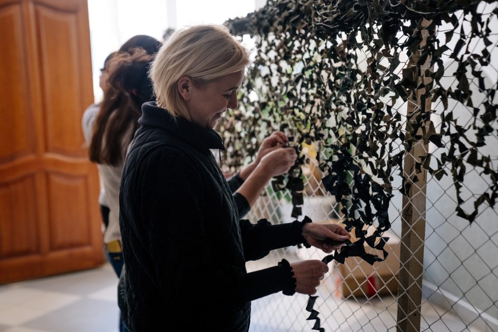 Вчителі закладу, каже пані Крістіна, постійно волонтерять поза дистанційним навчанням. У коридорі біля кабінету директора понад 20 учительок плетуть маскувальні сітки та кікімори для військових. Крім цього, школа відправляє на передову їжу: нещодавно зробили понад 500 сосисок у тісті.