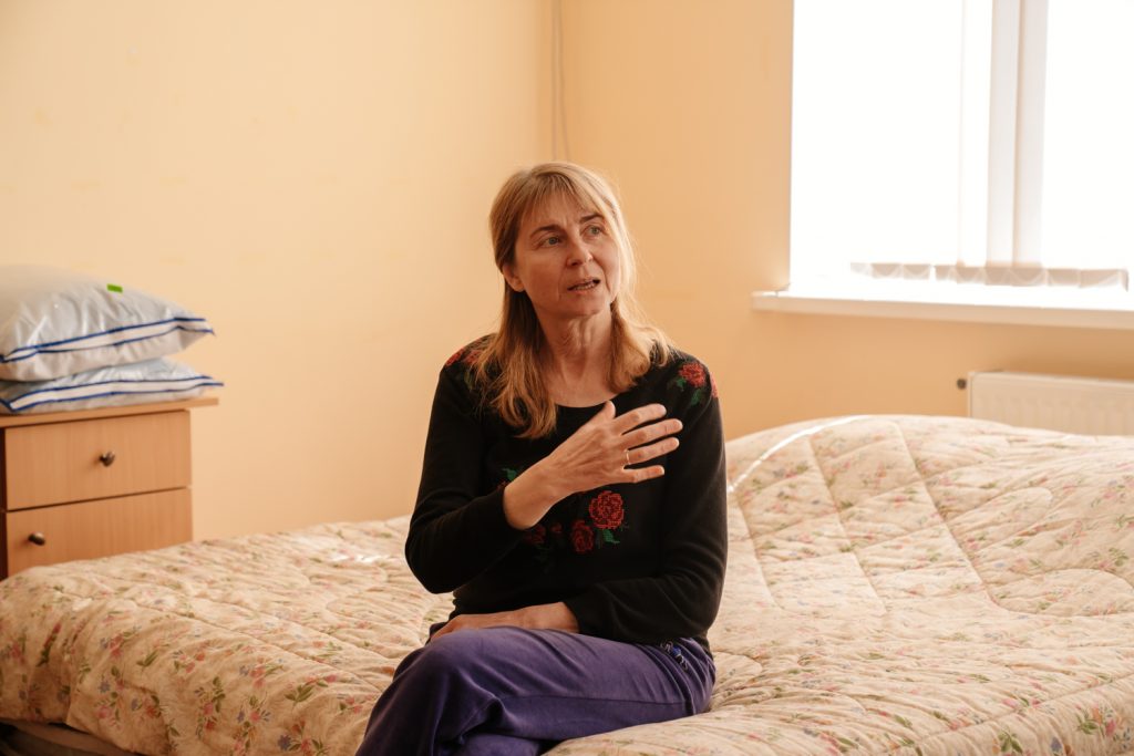 Переселенці часом також долучаються до волонтерства, та більше відпочивають. У колишніх дитячих кімнатах живуть і жінки, і чоловіки, бо можливости розділяти приміщення немає.