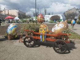 У центрі Чернівців до великодня відкрили виставку великих писанок.