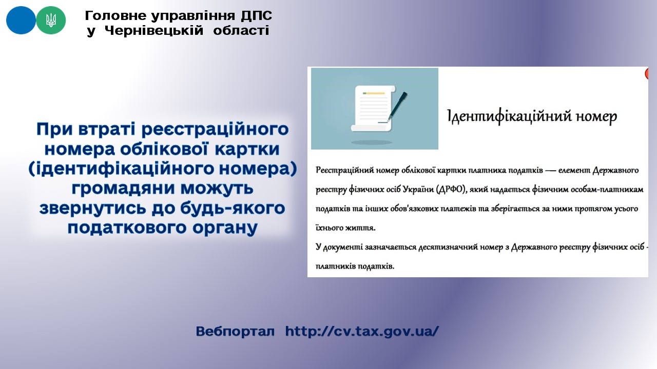 При втраті реєстраційного номера облікової картки (ідентифікаційного номера) громадяни можуть звернутись до будь-якого податкового органу