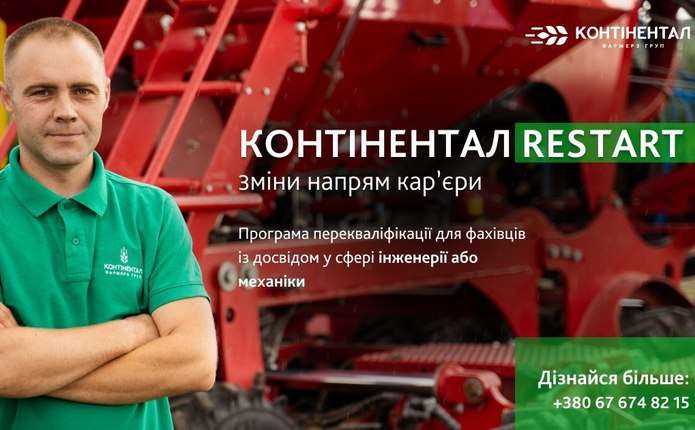 Компанія «Контінентал Фармерз Груп» упроваджує програму перекваліфікації «Контінентал Restart» для внутрішньо переміщених осіб. Мета освітнього проекту — створити нові можливості працевлаштування та кар’єрного росту для спеціалістів, які втратили роботу через ситуацію у країні та були змушені покинути регіони постійного проживання. Проект «Контінентал» надасть можливість застосувати та розширити  інженерну і технічну кваліфікації, здобувши практичні навички в агроінженерії, а також працевлаштуватися у сфері сільського господарства.