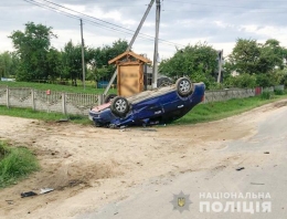 Внаслідок удару зустрічний автомобіль перекинувся.