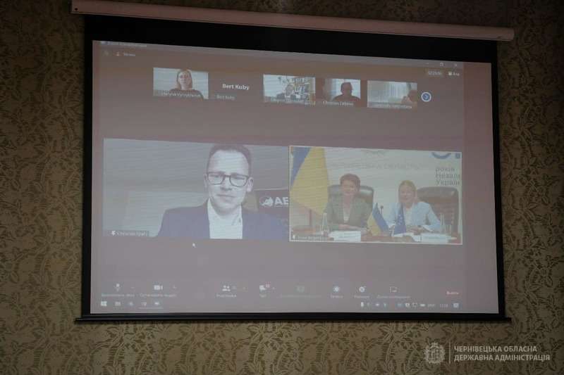 Вона розповіла європейським колегам про допомогу, яку Чернівецька область отримує від партнерських регіонів з ЄС, діяльність міжнародних організацій у краї, роботу Гуманітарного штабу та підтримку, яка надається внутрішньо переміщеним особам.