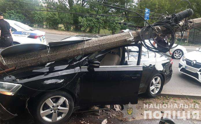 Зіткнулися 2 авто, одне виїхало на зустрічну та в’їхало в електроопору