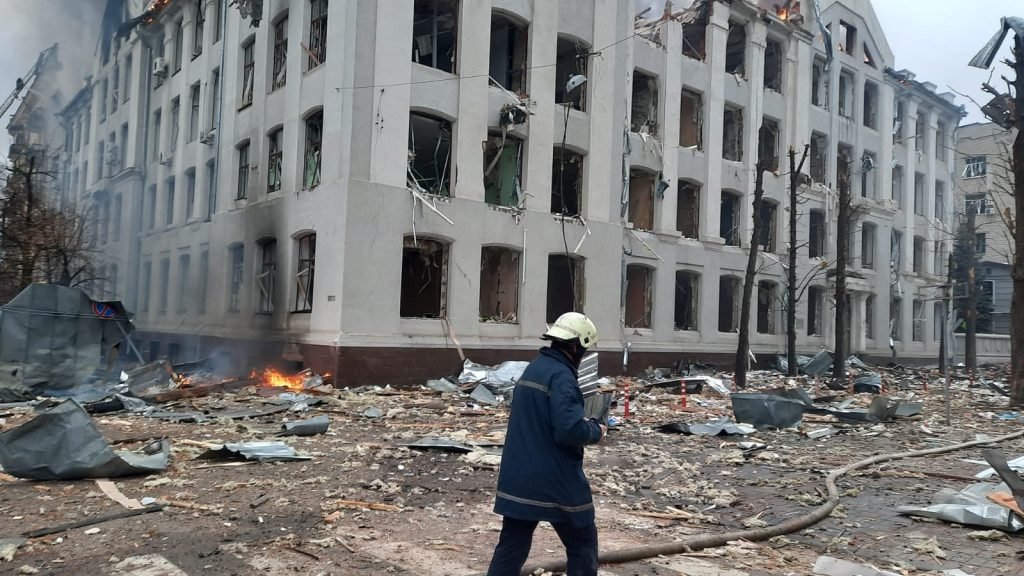 Фото kharkov.comments.ua; Харківський університет імені Василя Каразіна після ворожих обстрілів
