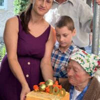З нагоди поважного ювілейного Дня народження гості висловили жінці слова вдячності і шани за багаторічну сумлінну працю, за мудрість та досвід, які вона передала своїм дітям, онукам та правнукам, та вручили квіти і подарунки.