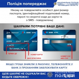 Правоохоронці нагадують буковинцям: за жодних обставин громадяни (телефоном чи особисто) не повинні розголошувати чи оприлюднювати інформацію таку інформацію:
