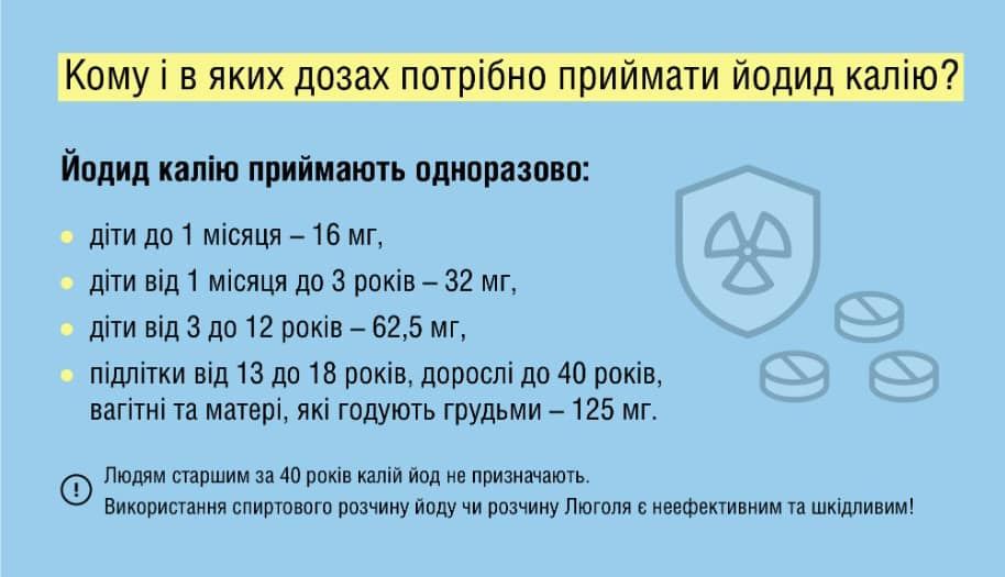 Більш детально про йодну профілактику в разі радіаційної аварії читайте на сайті МОЗу: https://bit.ly/3AKjOjD.