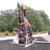 Віднедавна жителі та гості сокирянського краю мають можливість спостерігати оленя – велетня, який величаво розташовується на території Ломачинецького лісництва. Виготовлено скульптуру з дерев’яного бруса золотими руками майстра Олега Пилип’юка.