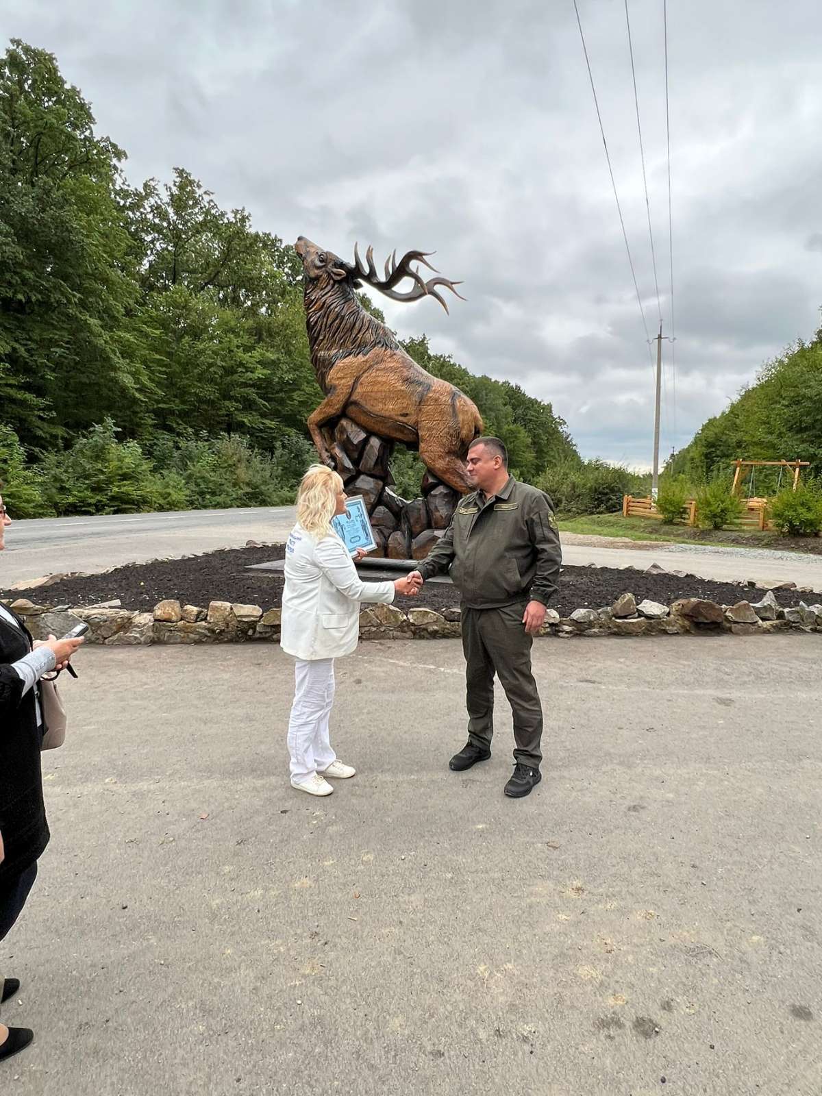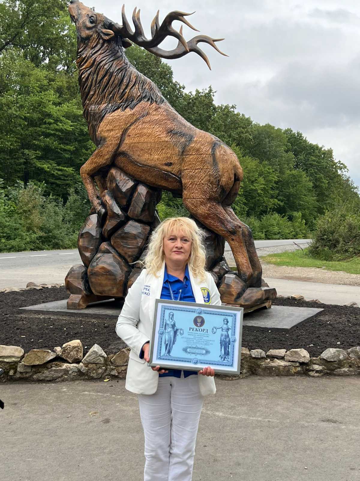 Як зауважила керівник «Національного реєстру рекордів України» Лана Ветрова, яка сьогодні відвідала Сокирянщину, аби особисто пересвідчитись в унікальності  творіння, дерев’яна скульптура оленя є найбільшою в Україні. Її висота сягає 4 м 47 см. Відтак, родзинка сокирянського краю тепер офіційно занесена до «Національного реєстру рекордів України». Відповідний документ організатору і натхненнику ідеї – директору ДП “Сокирянське лісове господарство” Олександру Чебану вручила Лана Ветрова.