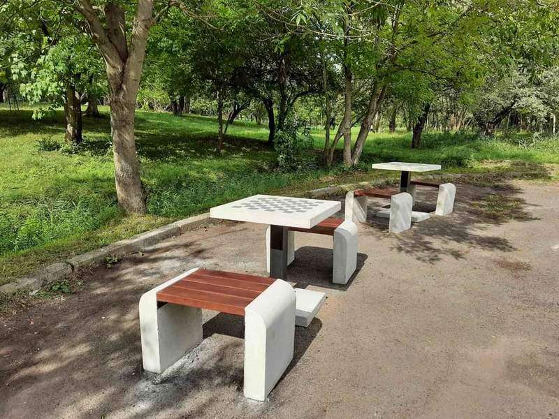 Там встановили тенісні столи та столи для гри в шахи і шашки
