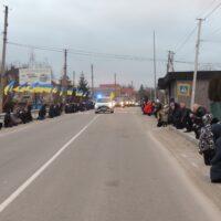 Жителі Сокирянської громади живим коридором на колінах з прапорами і лампадками зустріли полеглого на війні військовослужбовця Віктора Миколайовича Урсула із міста Сокиряни.