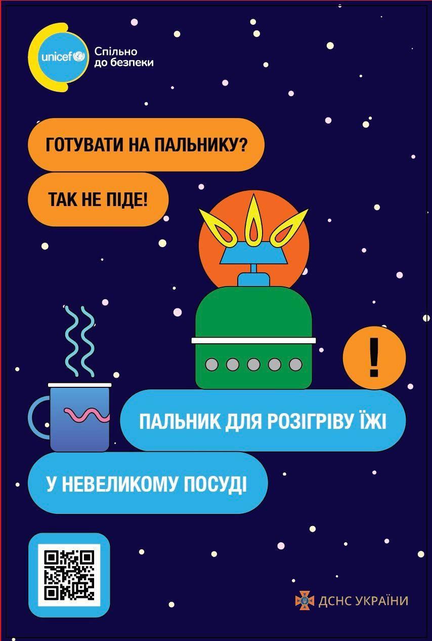 В Україні стартувала інформкампанія «Безпека вдома під час війни», покликана підвищити обізнаність українців із правил безпечної поведінки з генераторами, газовими пальниками, системою пічного опалення та свічками у разі відсутності електроенергії й тепла. Ініціативу впроваджує Державна служба України з надзвичайних ситуацій спільно з Дитячим фондом ООН (ЮНІСЕФ) в Україні.