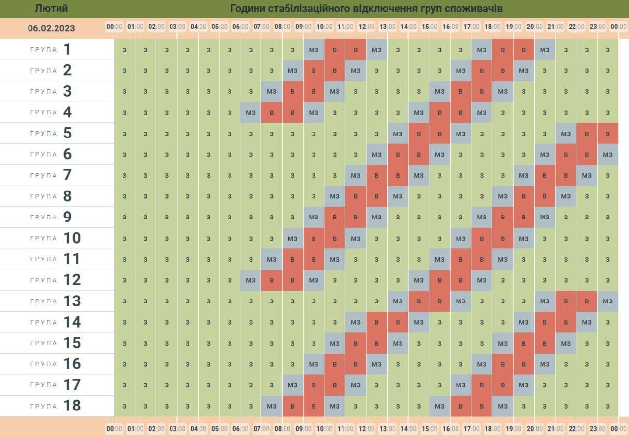 У новому графіку також з’явилися клітинки сірого кольору. Це той час, коли кожна група може бути заживлена — залежно від змін у лімітах споживання або зменшення споживання електроенергії.