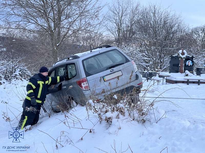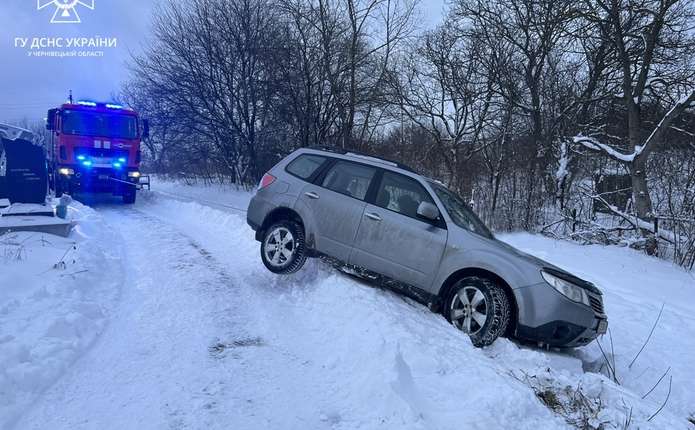 У місті Чернівці на вул. Заставнянській рятувальники 1 державної пожежно-рятувальної частини надали допомогу водієві легковика, котрий на засніженій ділянці дороги з’їхав у кювет.
