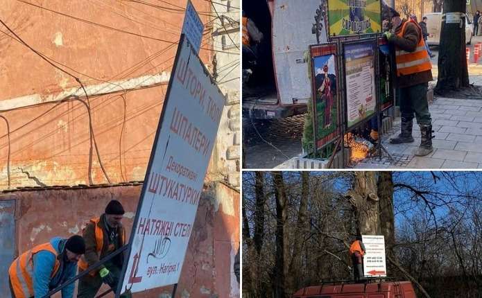 Очищення міста Чернівці від занедбаної та незаконної реклами триває.