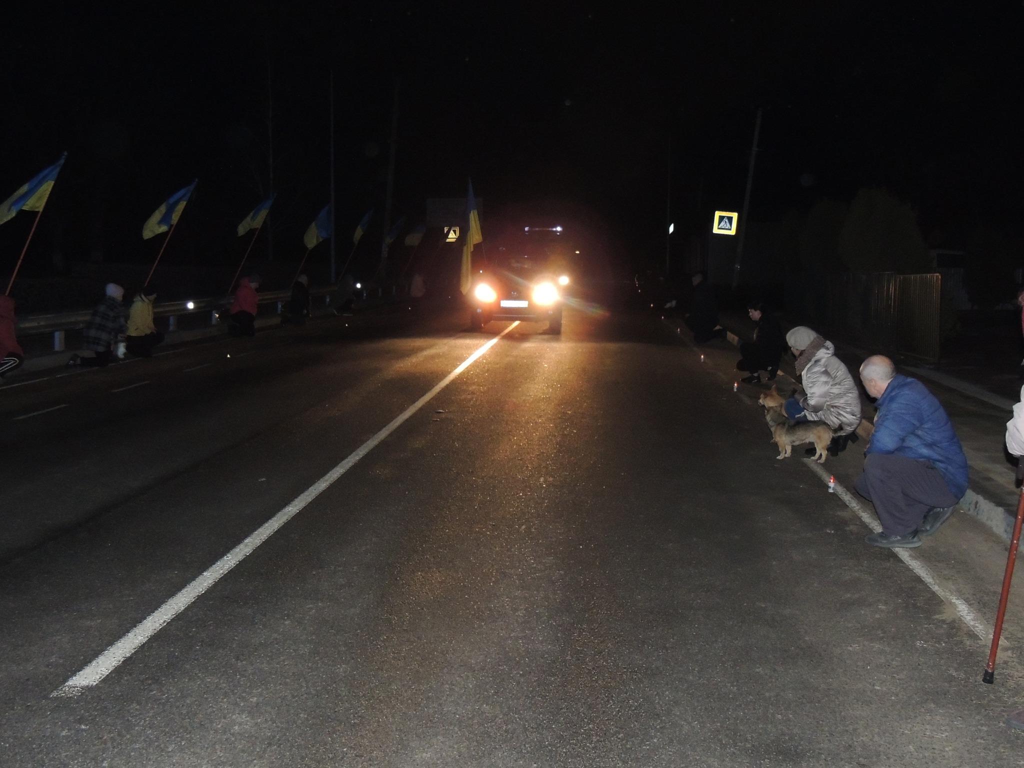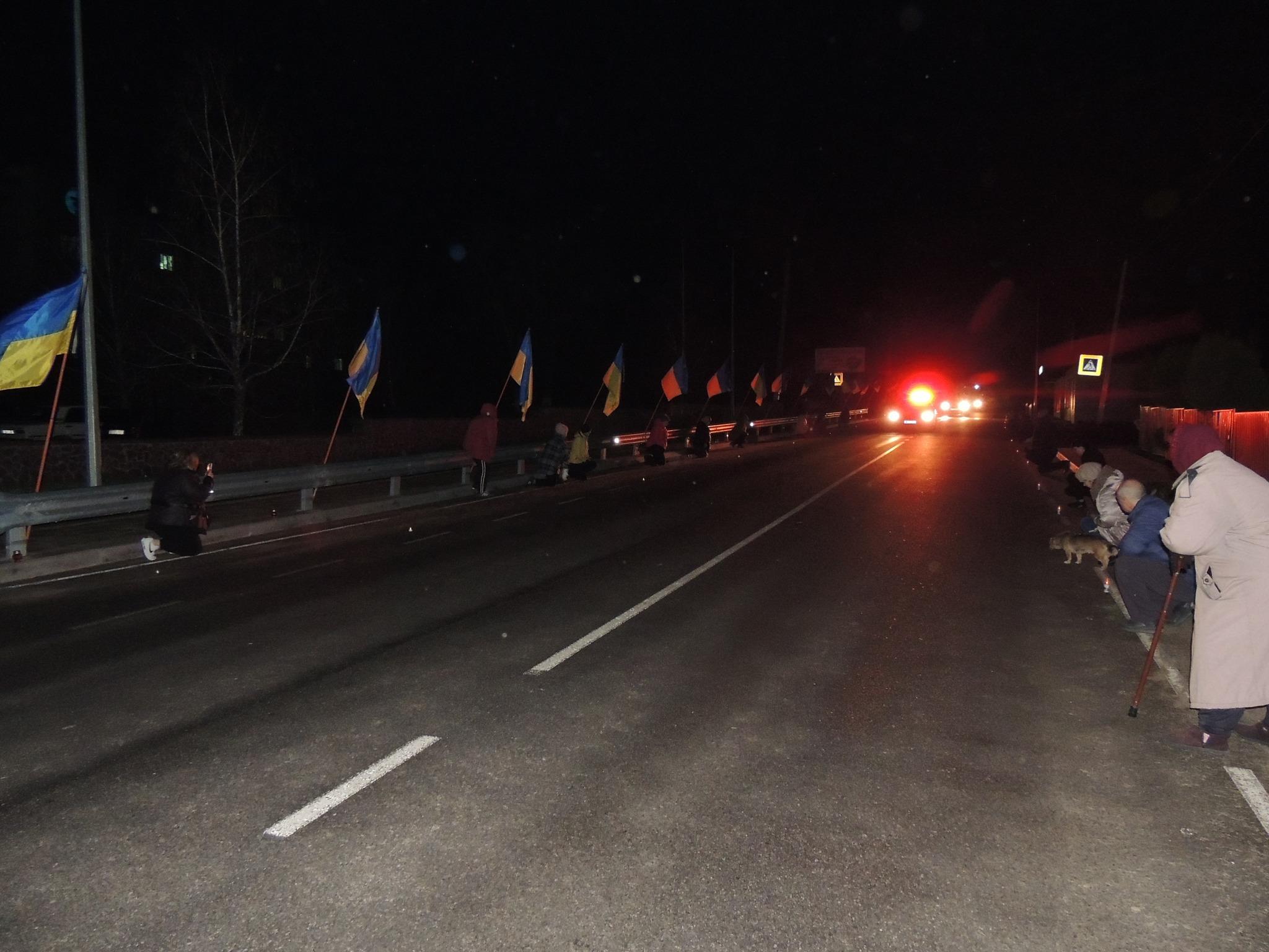 Живим коридор, стоячи на колінах, жителі Сокирянщини зустрічали траурний кортеж із тілом загиблого воїна.