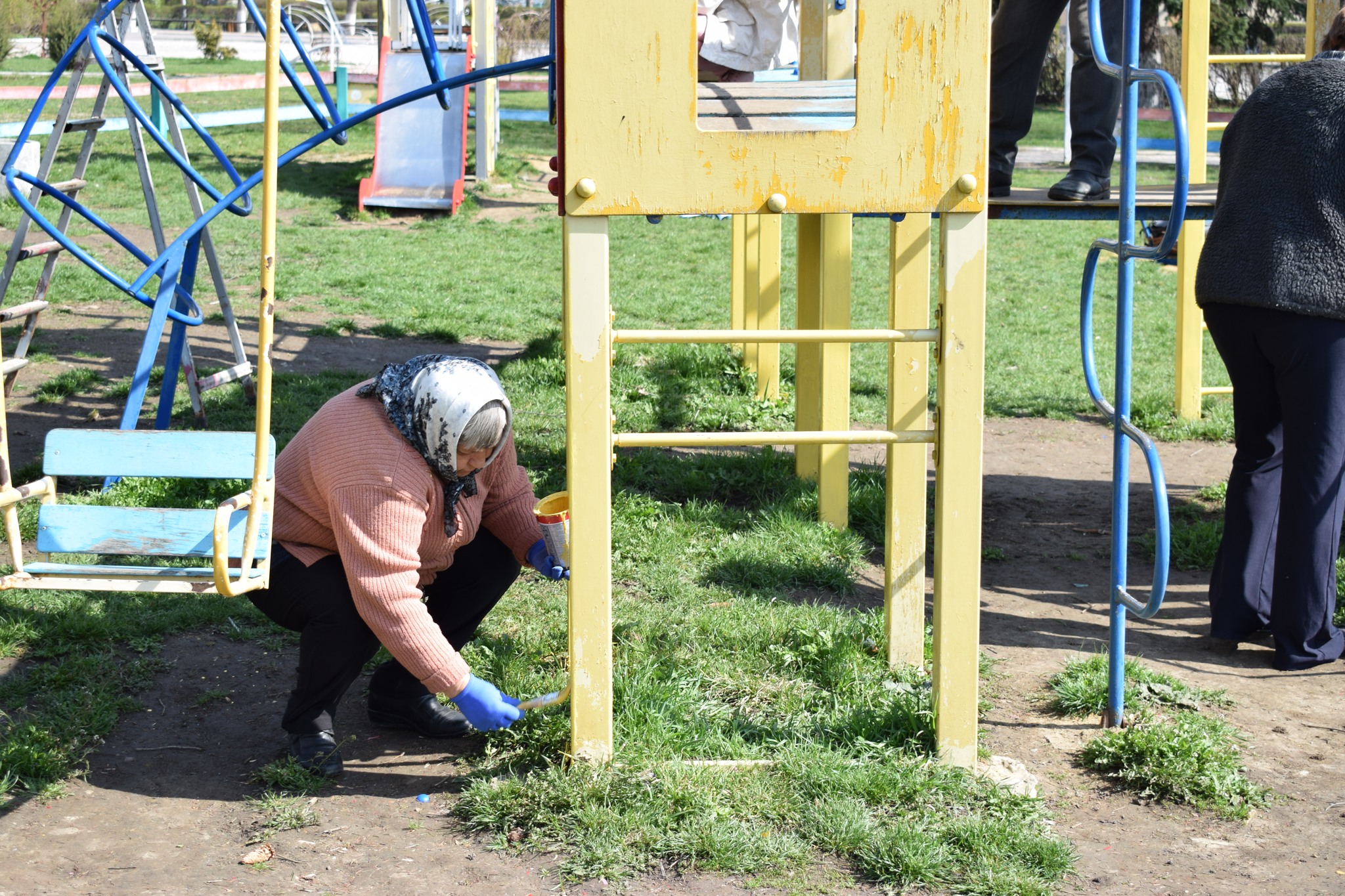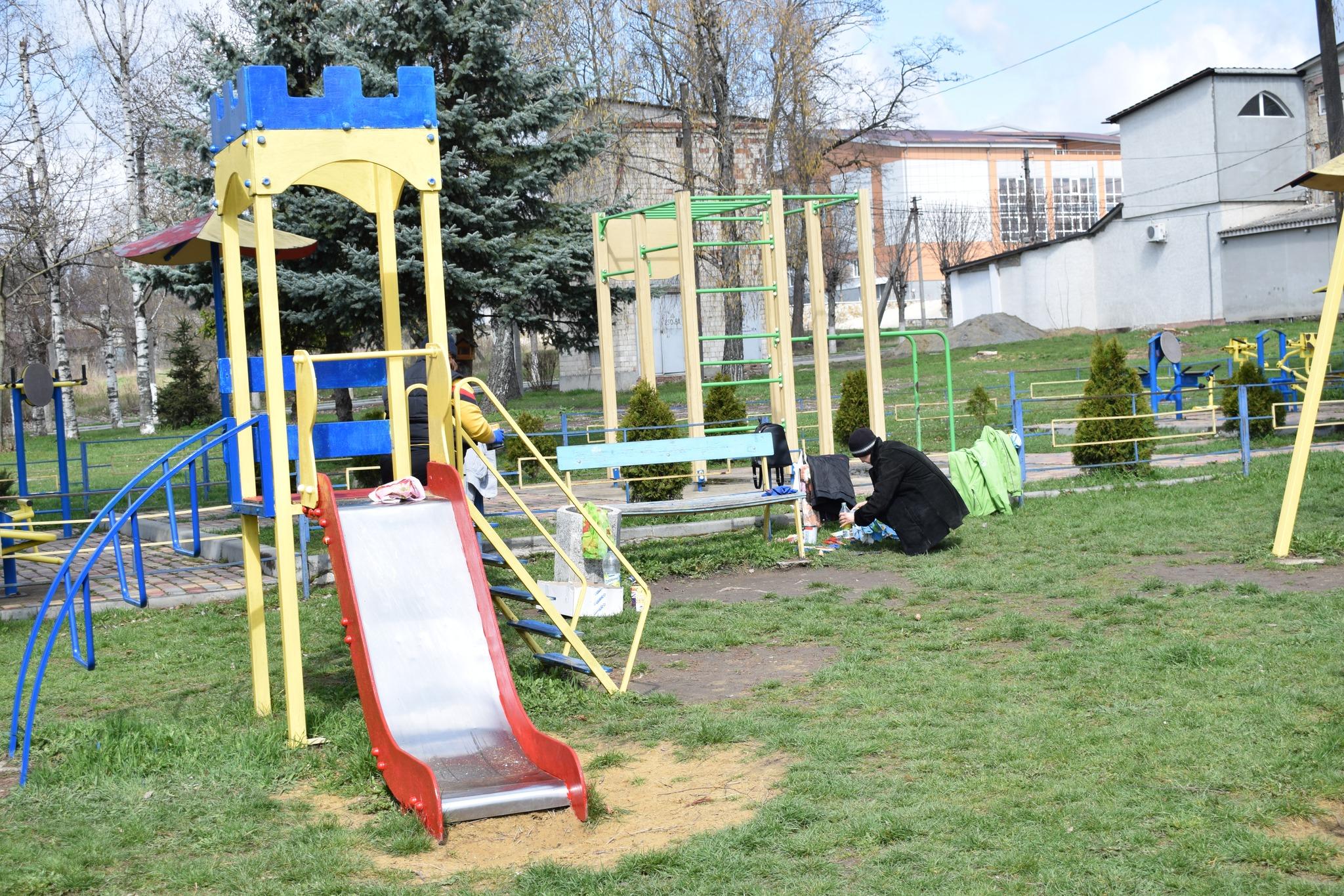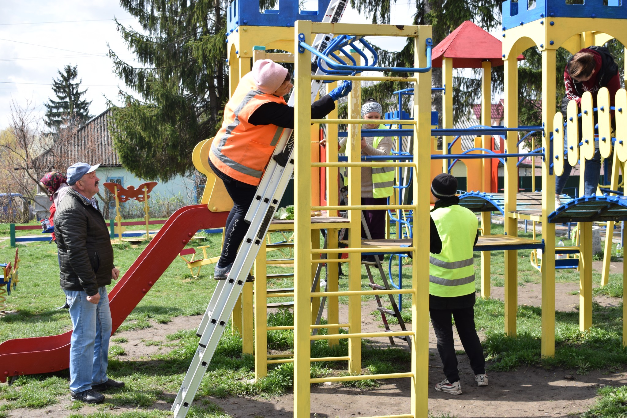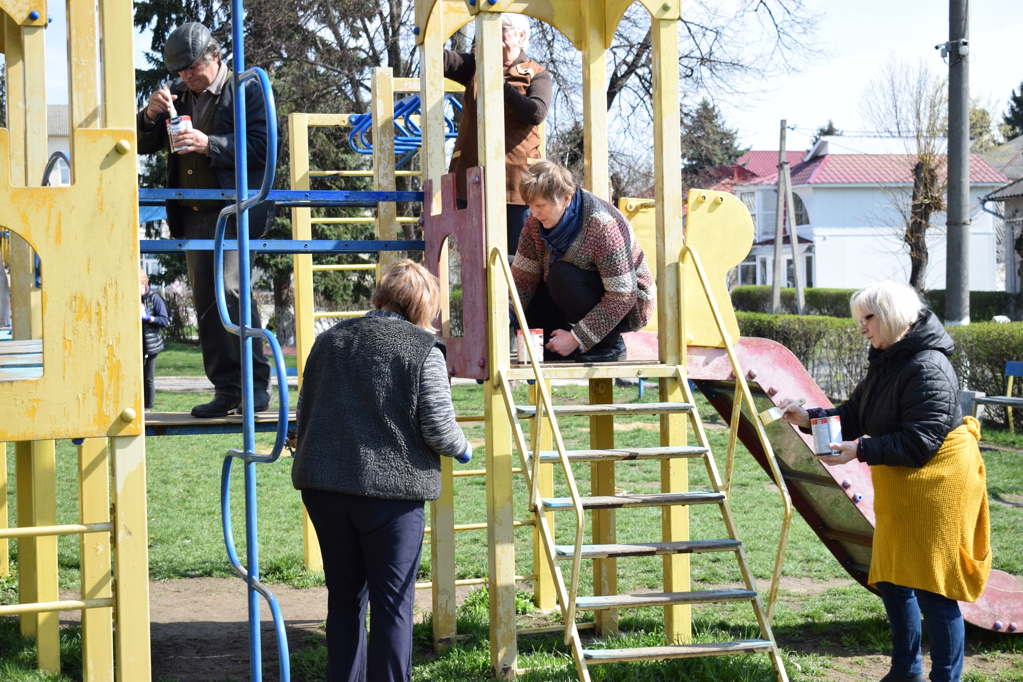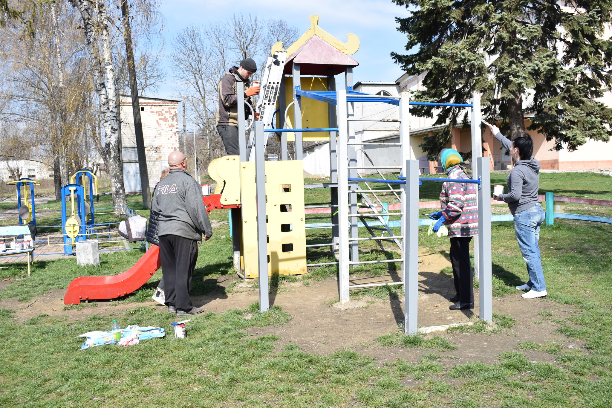 Зокрема, вже пофарбували паркан, лавочки, дитячі споруди та спортивні тренажери.