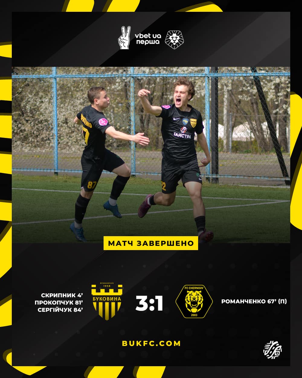 У рамках другого туру ІІ етапу VBET UA Першої ФСК «Буковина» приймала у Чернівцях «Чернігів-ШВСМ». «Жовто-чорні» завдяки м’ячам Іллі Скрипника, Кирила Прокопчука та Михайла Сергійчука перемогли чернігівських гостей з рахунком 3:1.