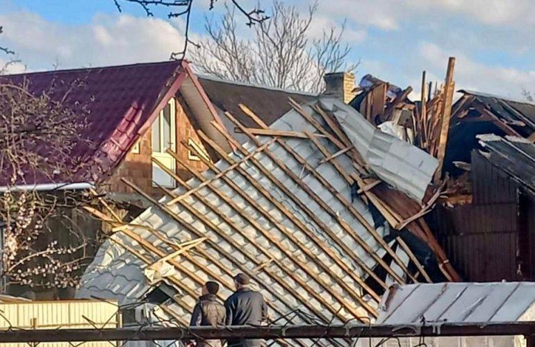 В одній з жилих будівель дах знесено вітром повністю та віднесено у сусідні двори.