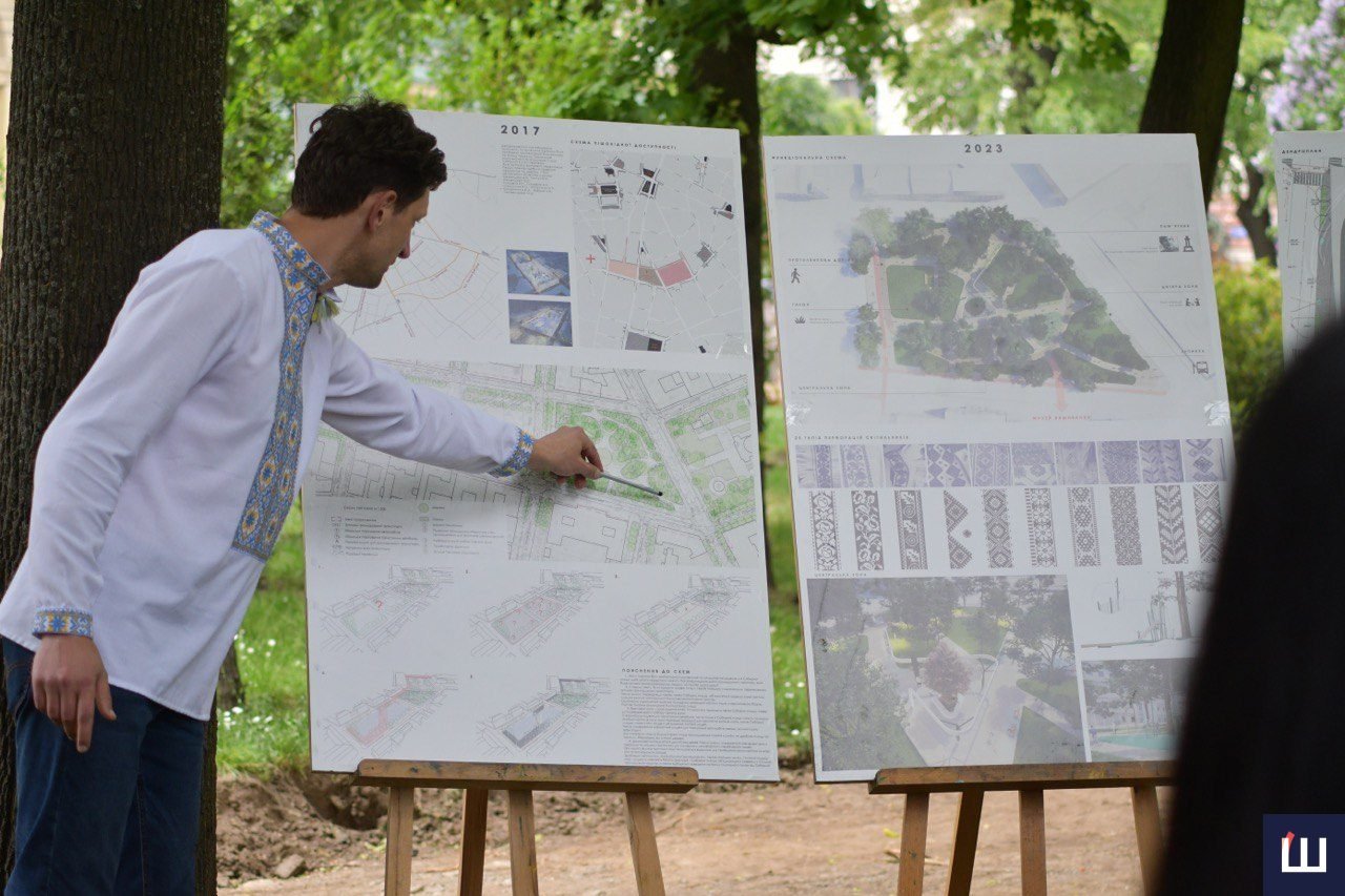 Сьогодні, 18 травня, у Чернівцях презентували проєкт реконструкції скверу Дня вишиванки. Архітектори, що розробляли проєкт, презентували його на місці, де вже розпочали роботу.