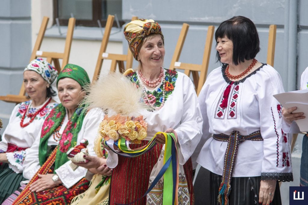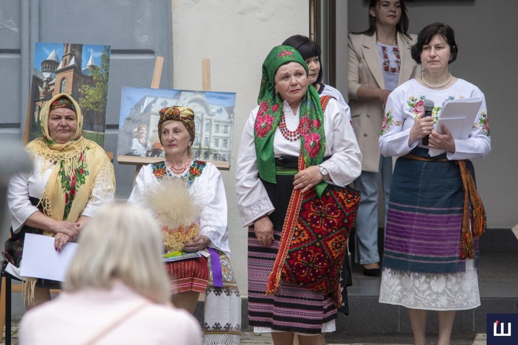 До Всесвітнього дня вишиванки у дворику Чернівецької міської ради вимушені переселенки з багатьох міст України проходили червоною доріжкою, щоб представити традиційні буковинські костюми-вишиванки.