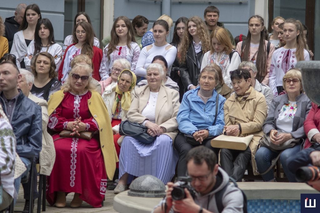 До Всесвітнього дня вишиванки у дворику Чернівецької міської ради вимушені переселенки з багатьох міст України проходили червоною доріжкою, щоб представити традиційні буковинські костюми-вишиванки.