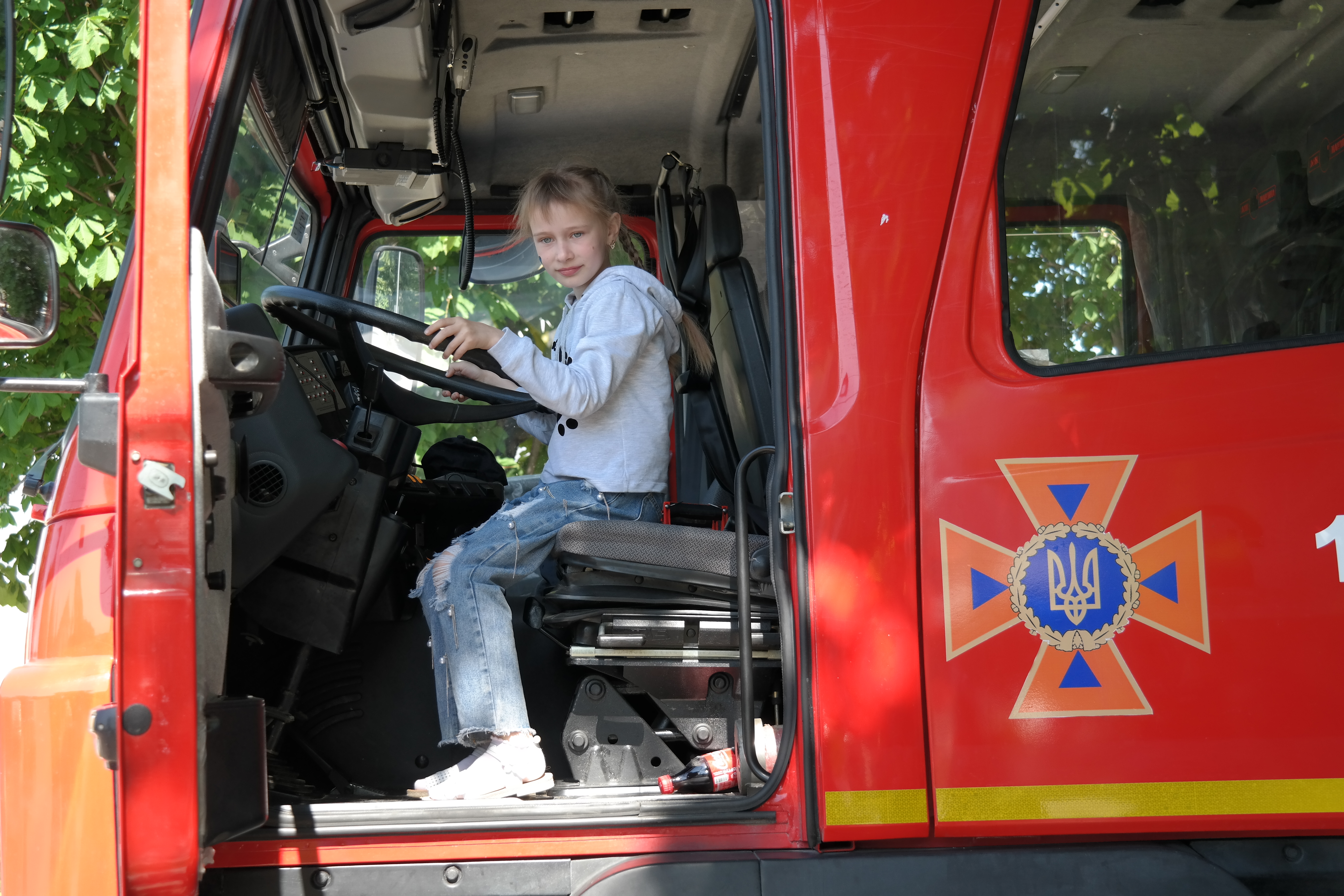 Юні хлопчики й дівчатка мали змогу нанести дитячий аква-грим, поласувати солодощами: морозивом, попкорном, солодкими напоями тощо, а також дізнатися таємниці пожежної техніки та побувати в службовому автотранспорті поліції.